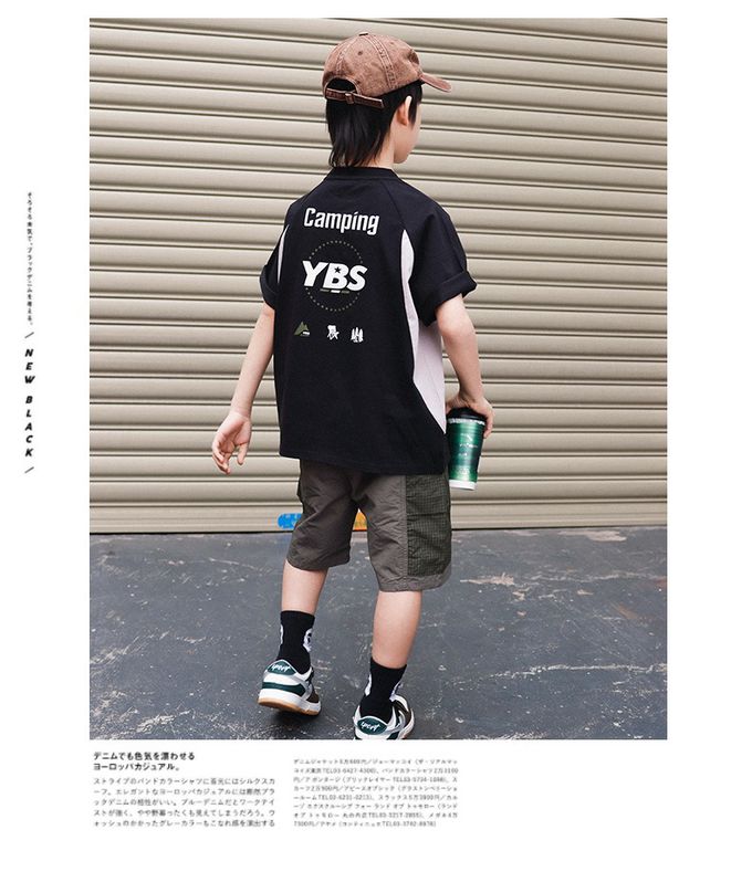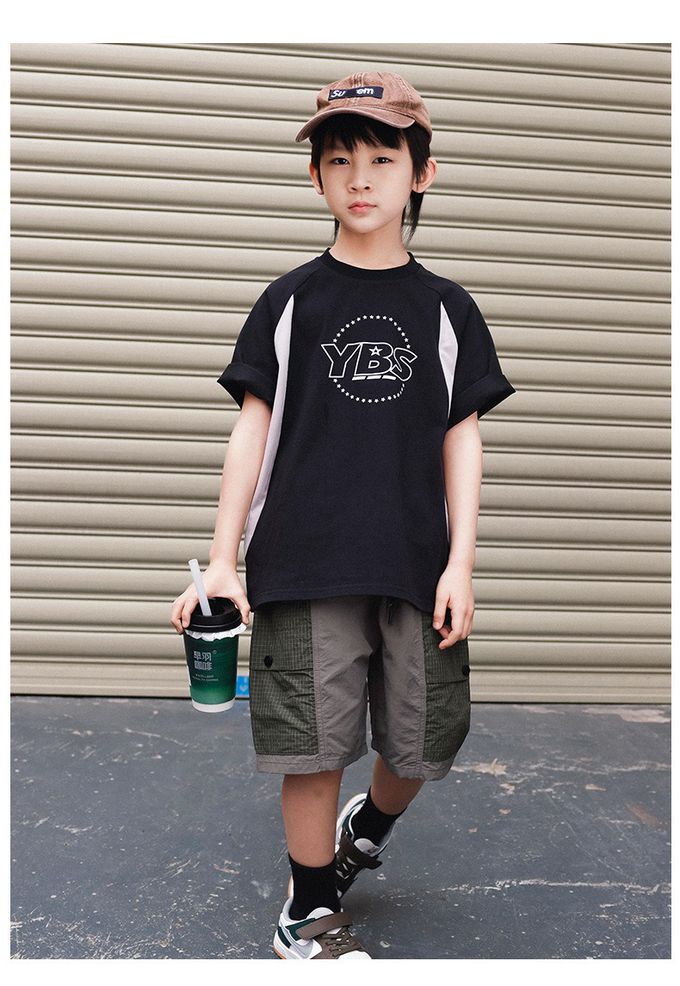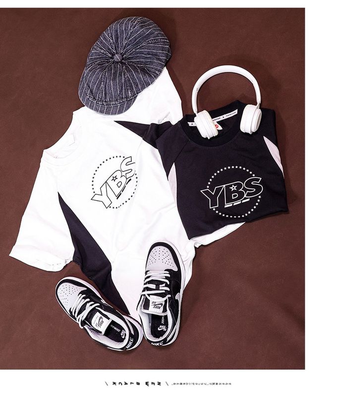 棉質圓領短袖上衣-個性拼色字母-黑色