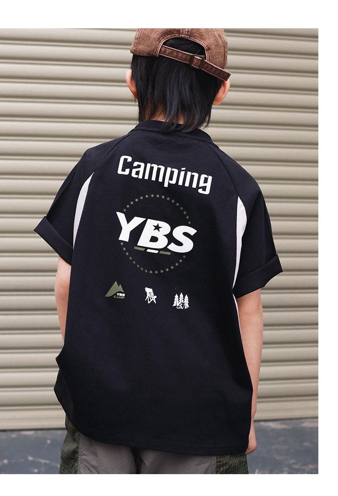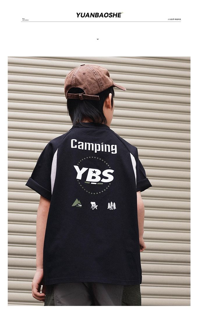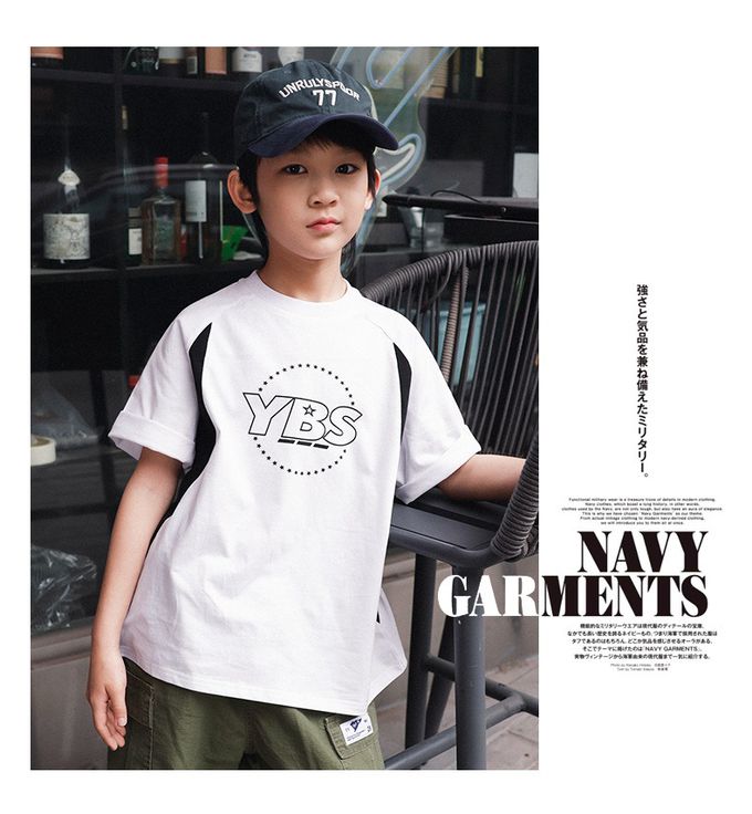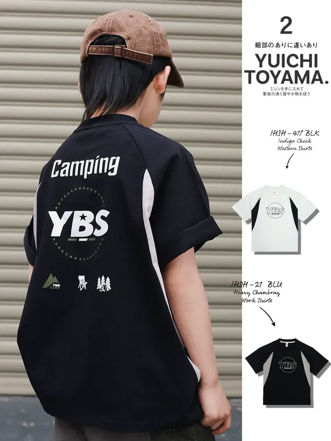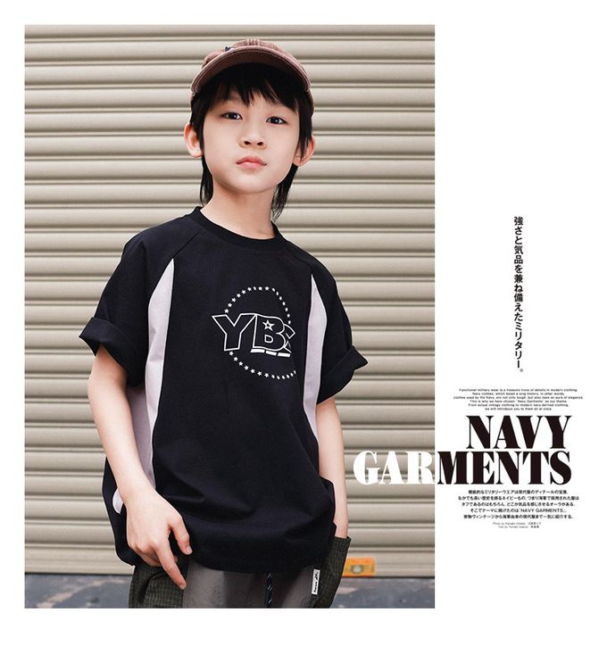Y B S - 棉質圓領短袖上衣-不收編布標-藏青