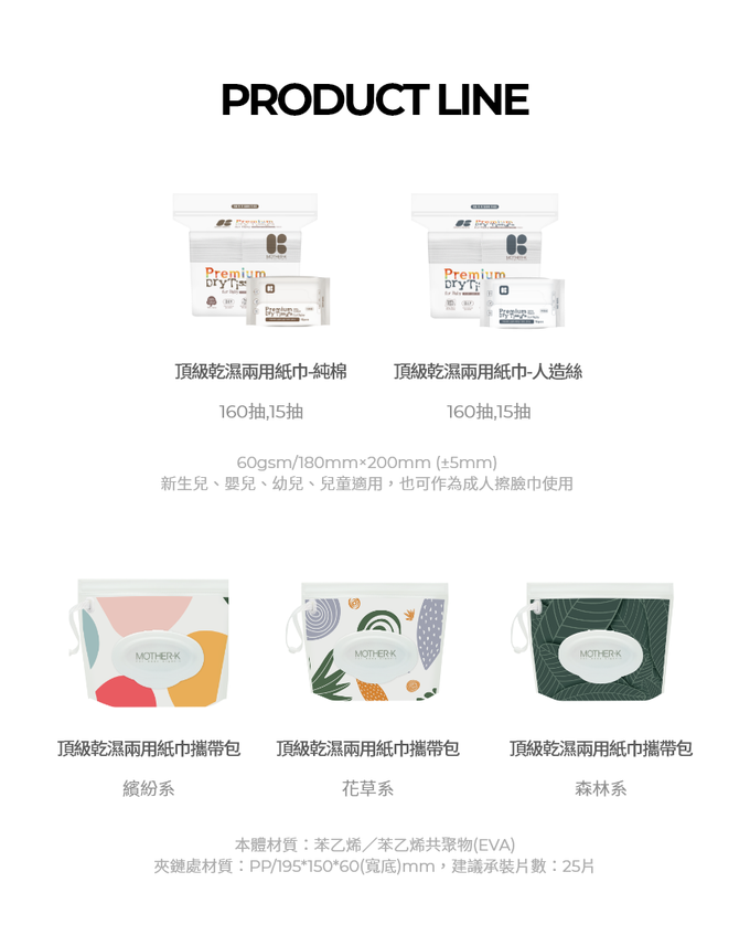 -新生兒親膚衣物(嬰幼兒包巾與背巾、包屁衣、學習褲、紗布衣等)。