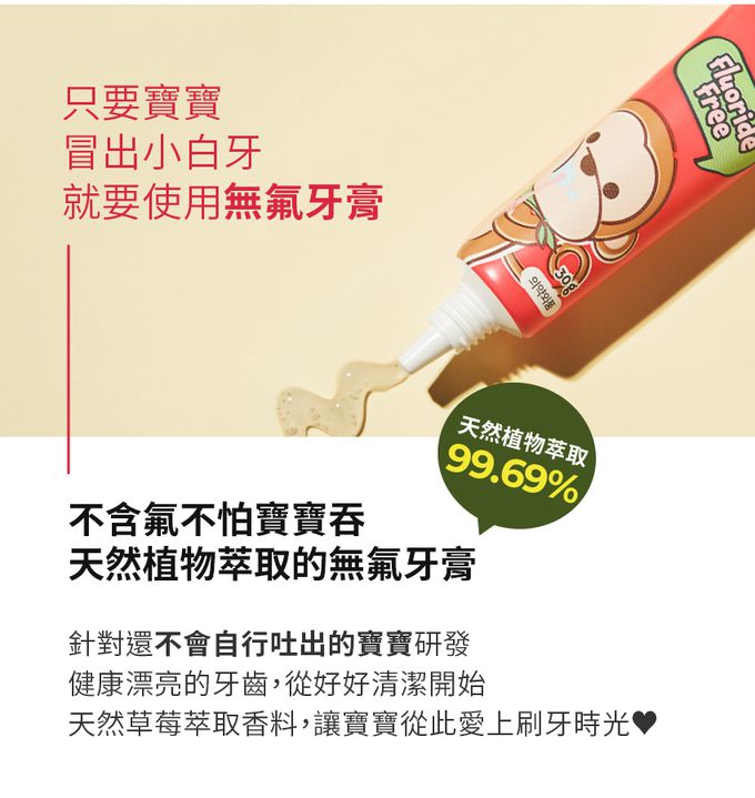 品名:植萃嬰幼兒無氟牙膏-鮮嫩草莓30g