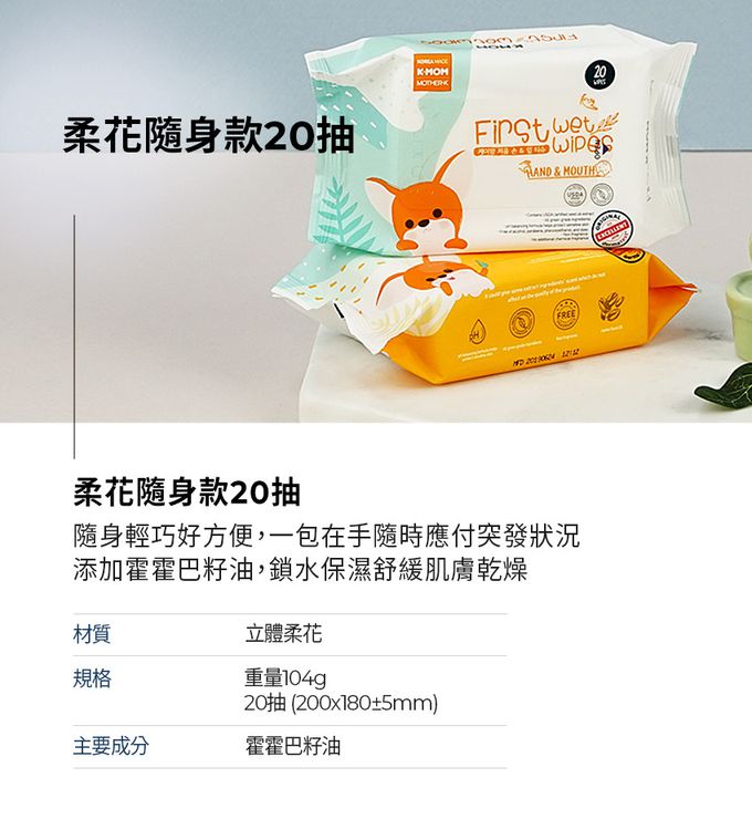 品名:自然純淨嬰幼兒濕紙巾-基本攜帶30抽(6/12/20包組)