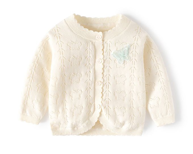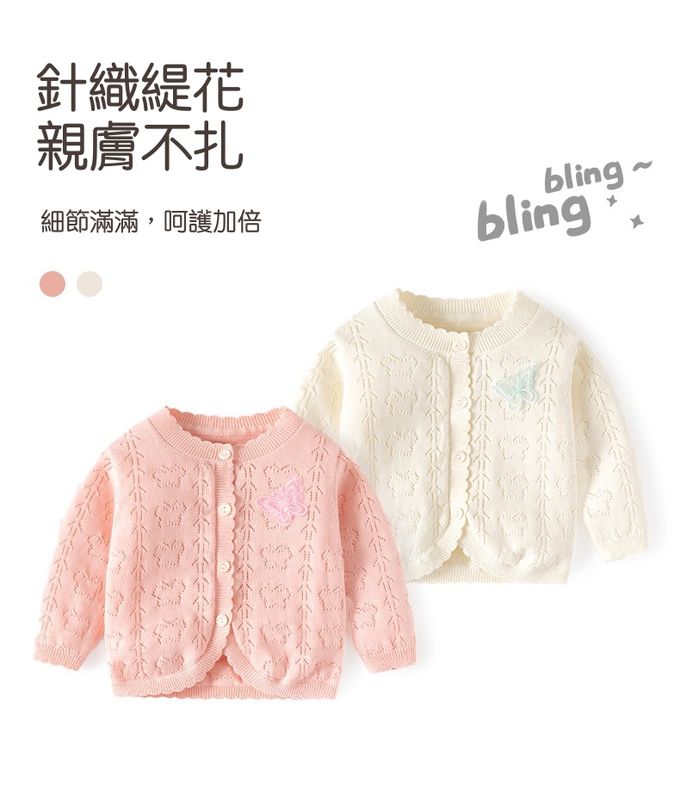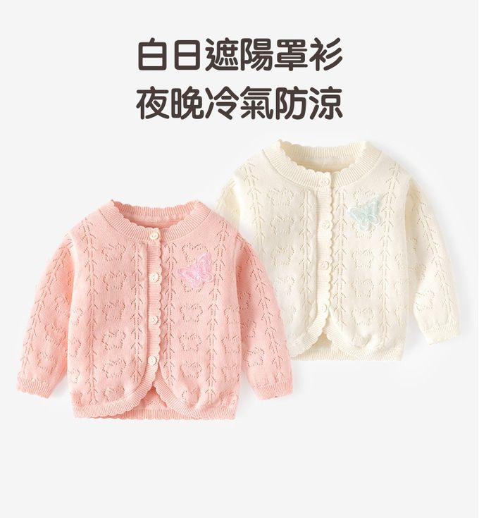 純棉輕薄透氣小外套-蝴蝶飛飛-白杏色