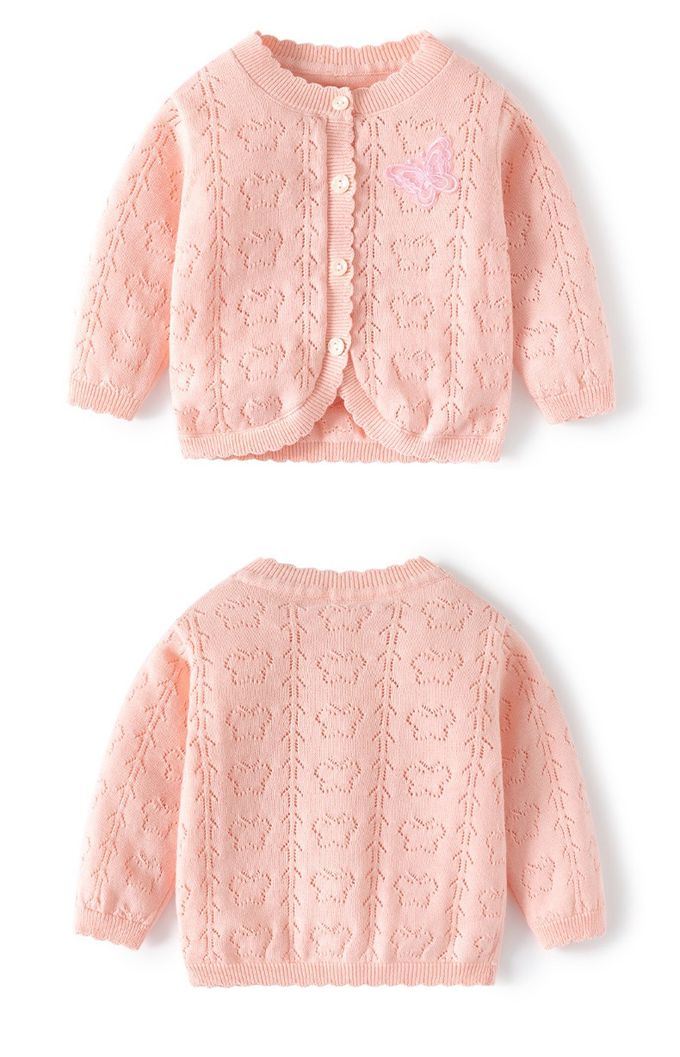 BABUYU - 純棉輕薄透氣小外套-刺繡小花-粉色