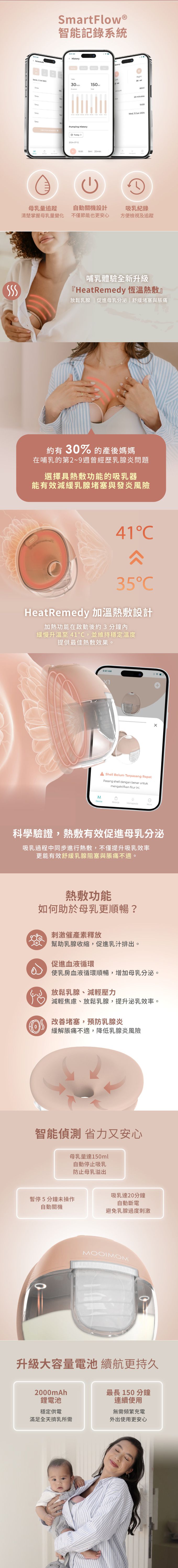 結合HeatRemedy恆溫熱敷功能,溫和放鬆乳腺、促進母乳分泌