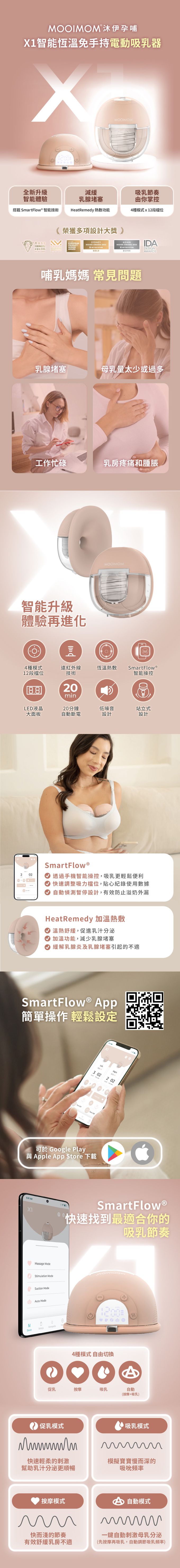|MOOIMOM 沐伊孕哺 X1智能恆溫免手持電動吸乳器|