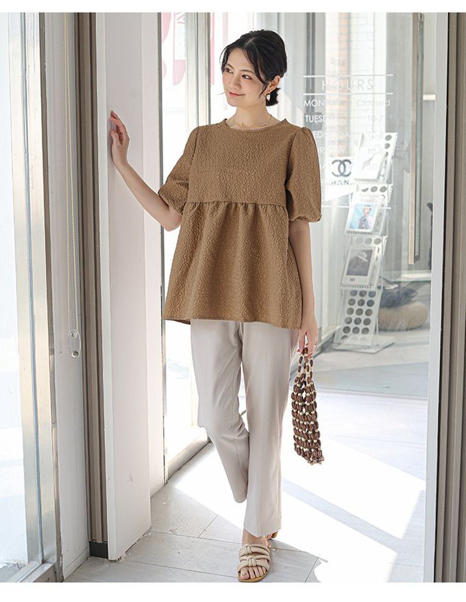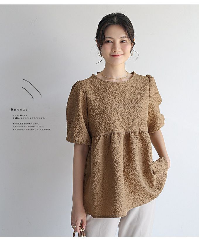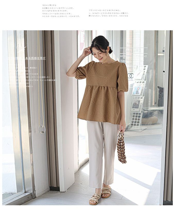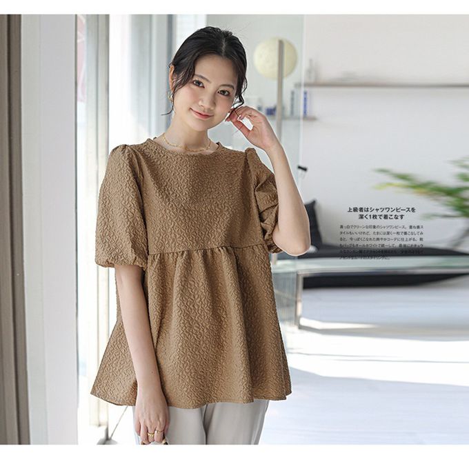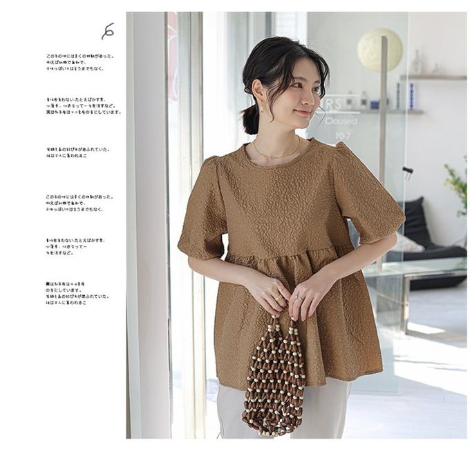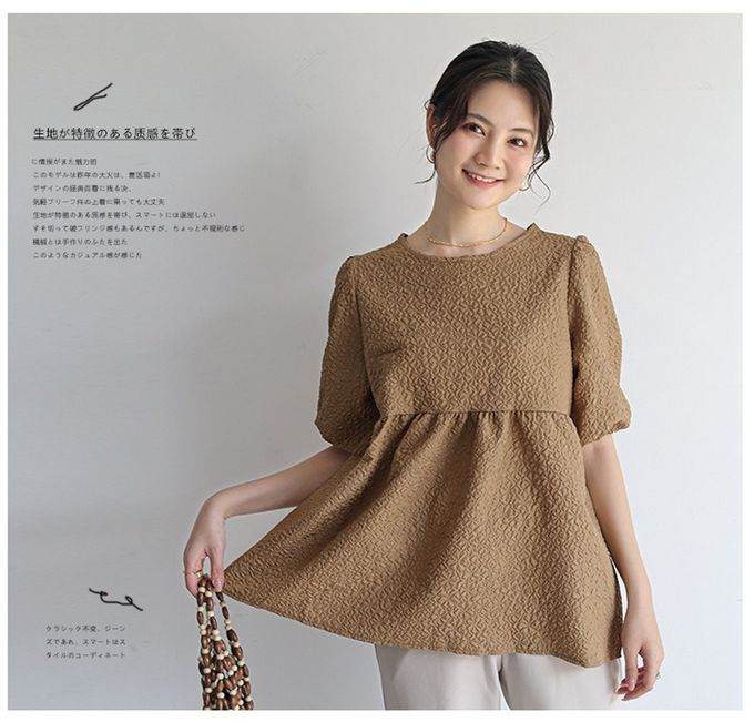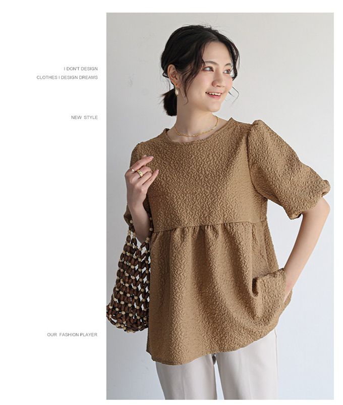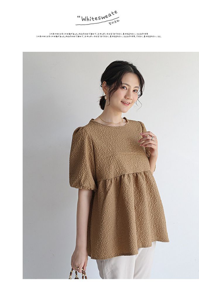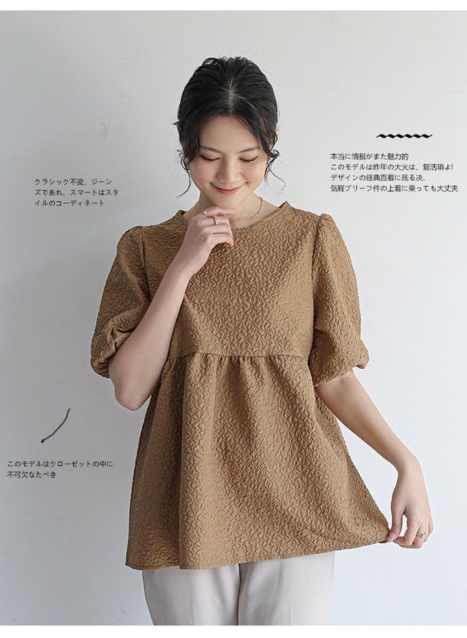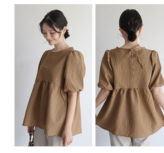 甜美減齡後綁帶泡泡袖上衣-咖啡色