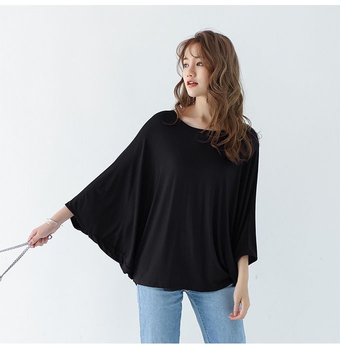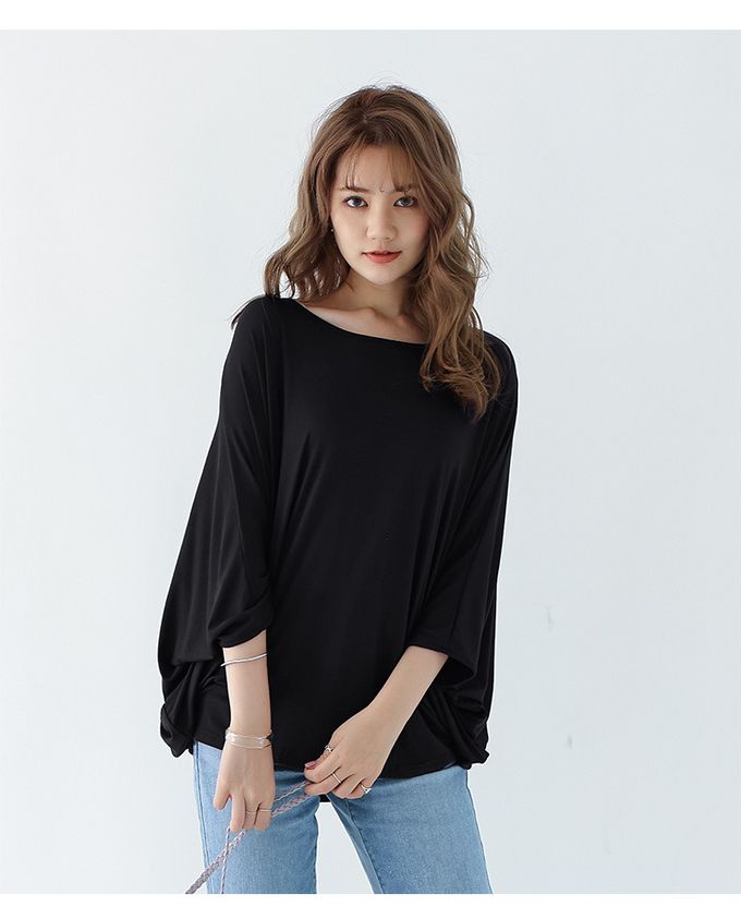 莫代爾3D剪裁瘦瘦蝙蝠袖上衣-黑色 (F)