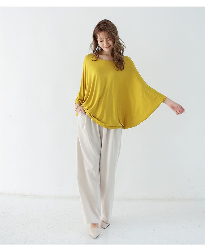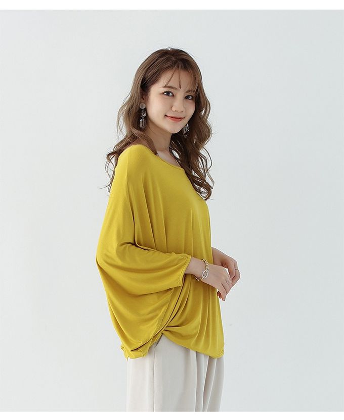 莫代爾3D剪裁瘦瘦蝙蝠袖上衣-黃色 (F)