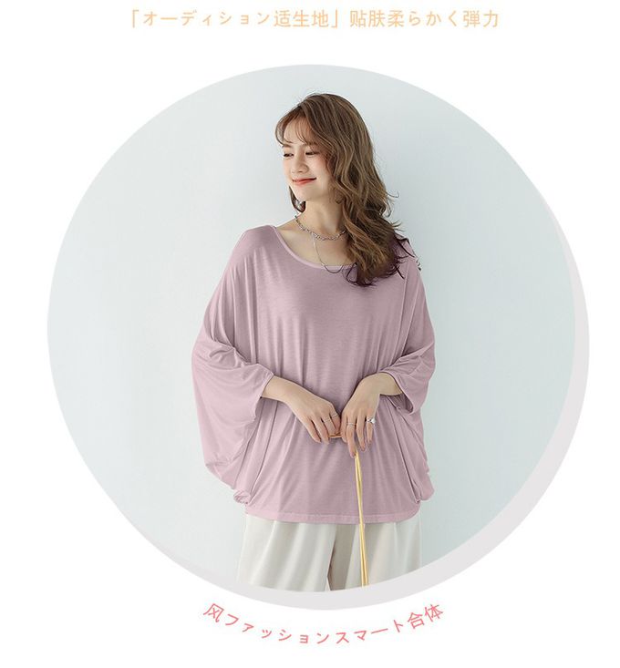 莫代爾3D剪裁瘦瘦蝙蝠袖上衣-豆沙粉 (F)
