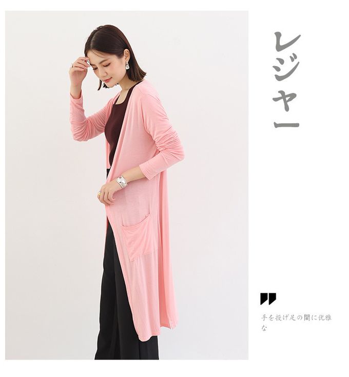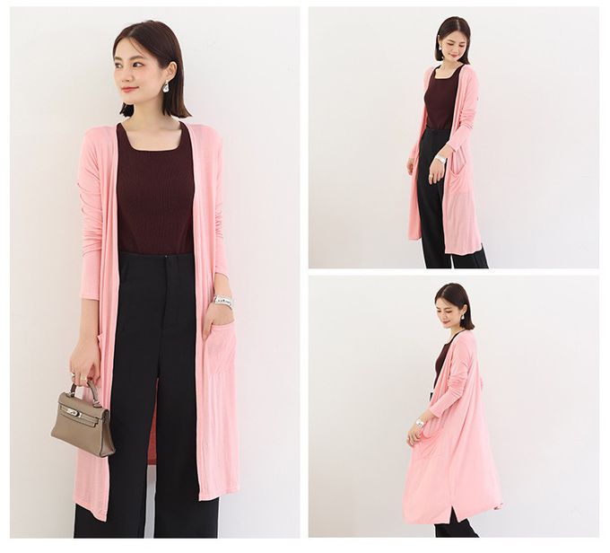 莫代爾雙口袋長版防曬外套/罩衫-粉色 (F)