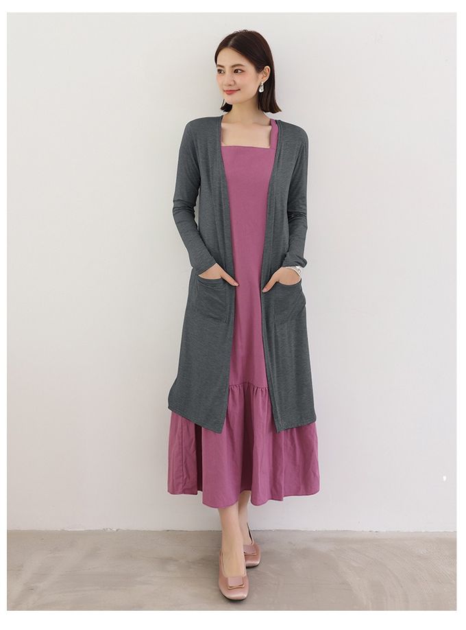 • 品名:莫代爾雙口袋長版防曬外套/罩衫