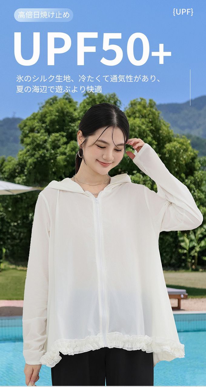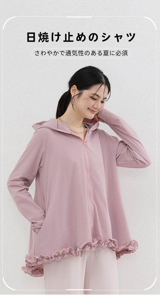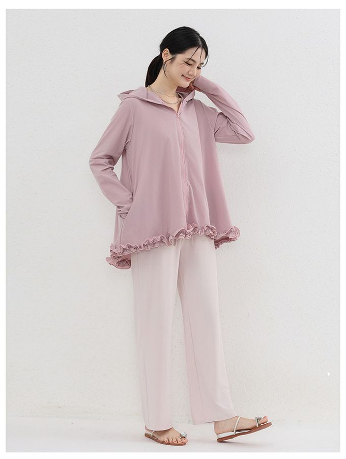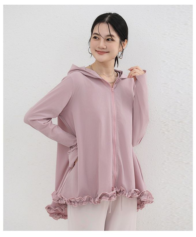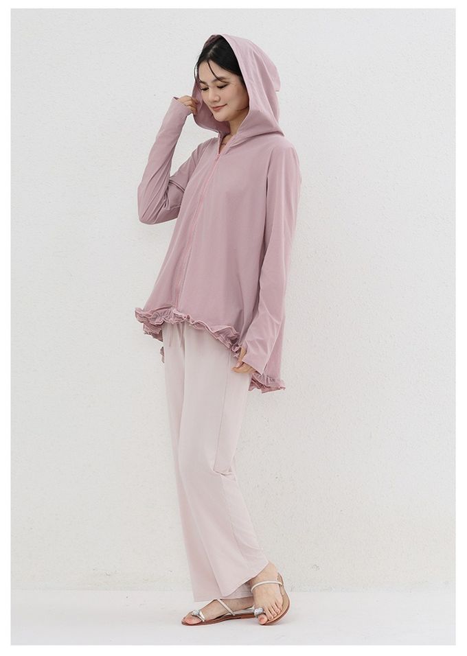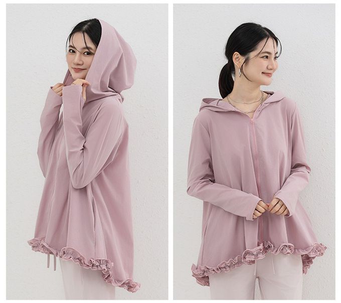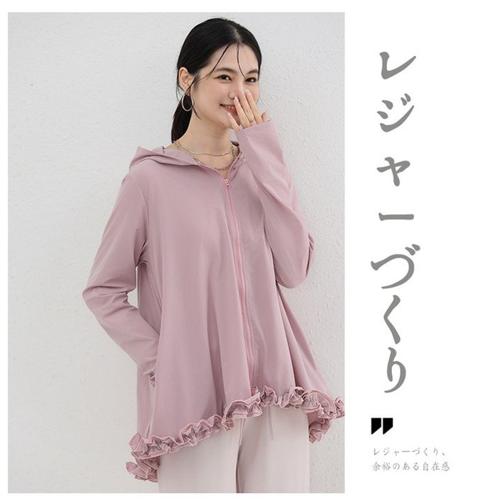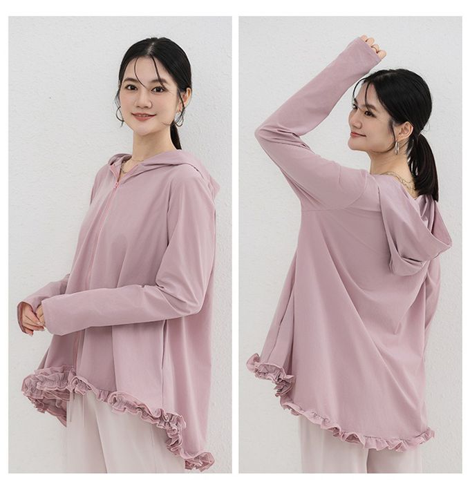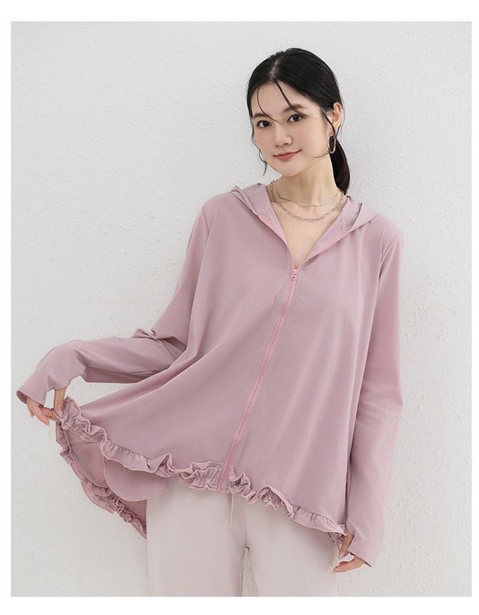 設計感前短後長連帽防曬外套-荷葉邊-淺紫色
