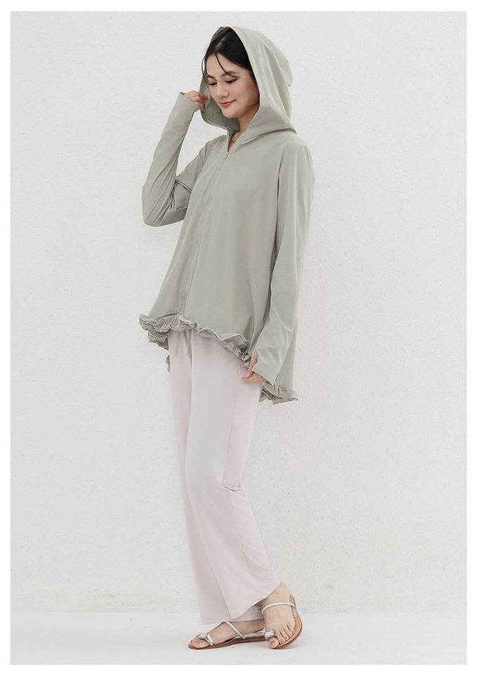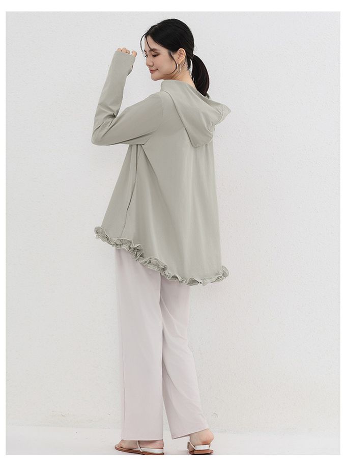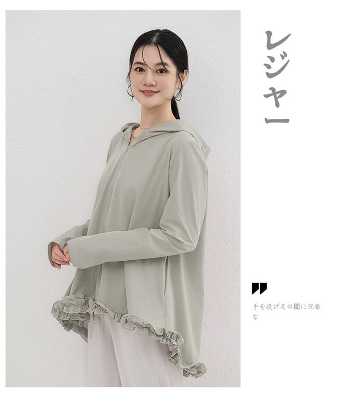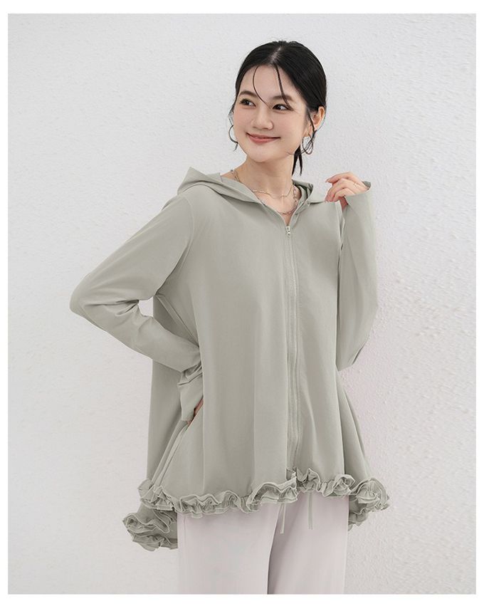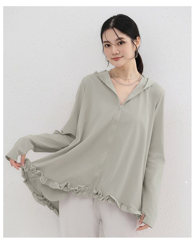 設計感前短後長連帽防曬外套-荷葉邊-淺綠色