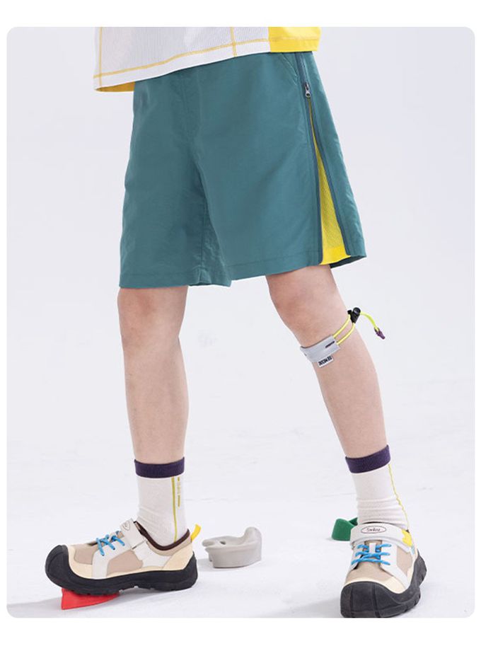 輕薄透氣吸濕速乾短褲-可調式拉鍊-藍綠色