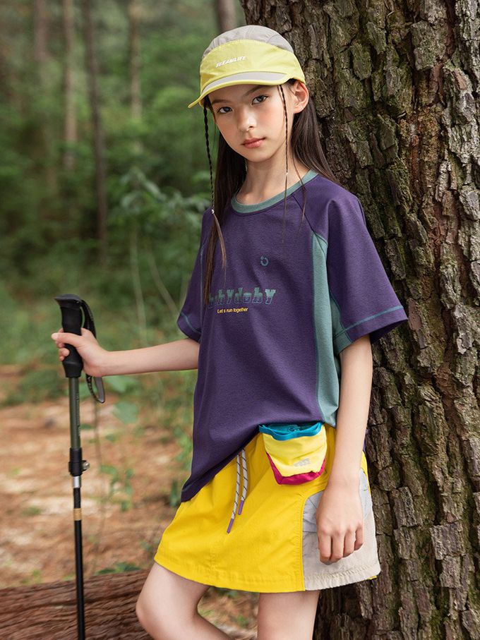 babybody - 透氣吸濕速乾撞色工裝裙褲-黃色