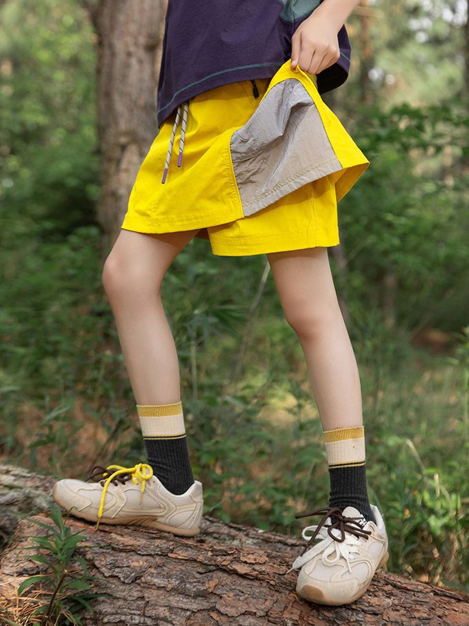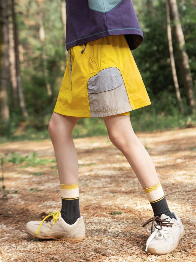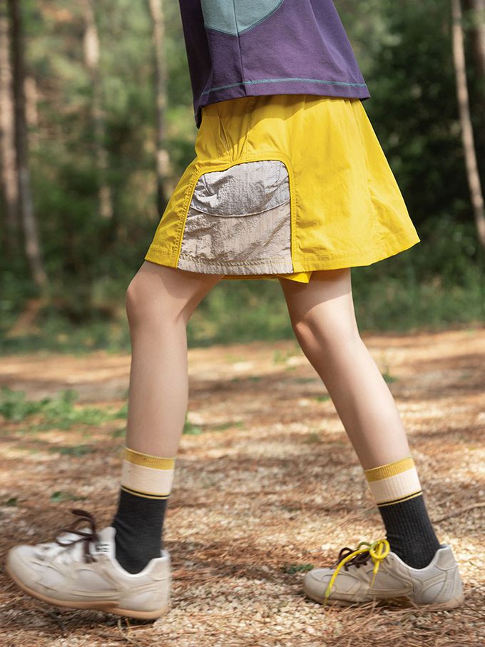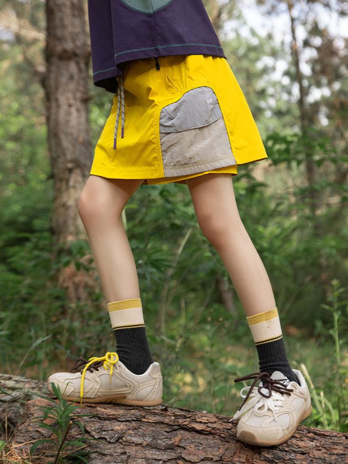 透氣吸濕速乾撞色工裝裙褲-黃色