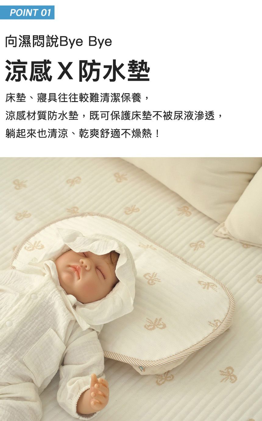 因此在容易流汗的環境、或本身體質就容易爆汗的寶貝,就特別需要有涼感功能、材質安全無毒不刺激的防水墊!