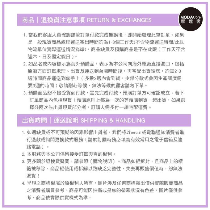 預購商品:預購為海外同步代購,遇缺貨即會通知媽咪並協助取消退款事宜。