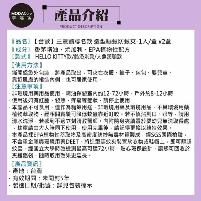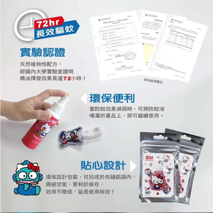 品名:三麗鷗聯名款 造型驅蚊防蚊夾1入/盒*2盒(三種款式可選) 便攜式 長效 露營 戶外 踏青-摩達客推薦