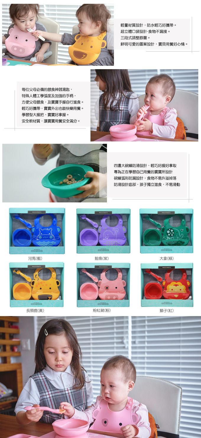 ■內容物 : 矽膠立體圍兜 / 矽膠餵食湯匙 / 矽膠兒童餐碗