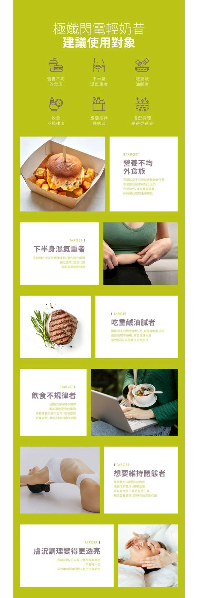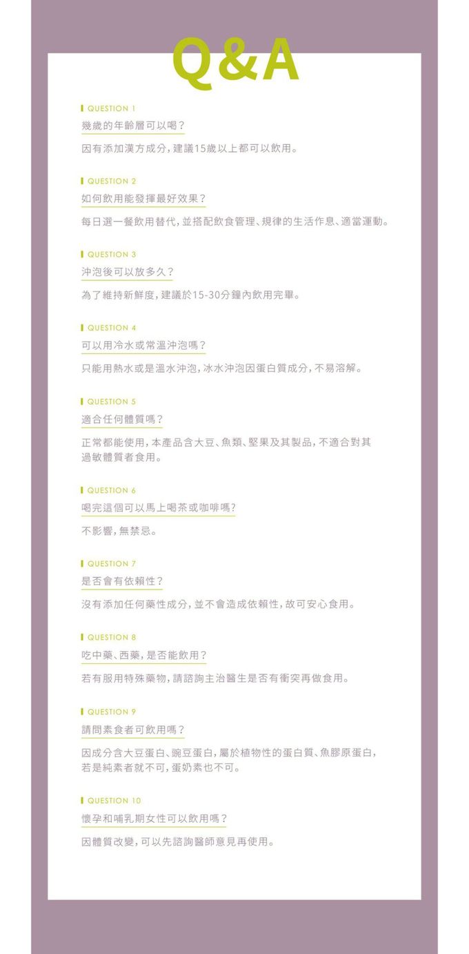 飲用時機:欲進行飲食管理者,建議早餐、午餐、晚餐沖泡作為營養來源