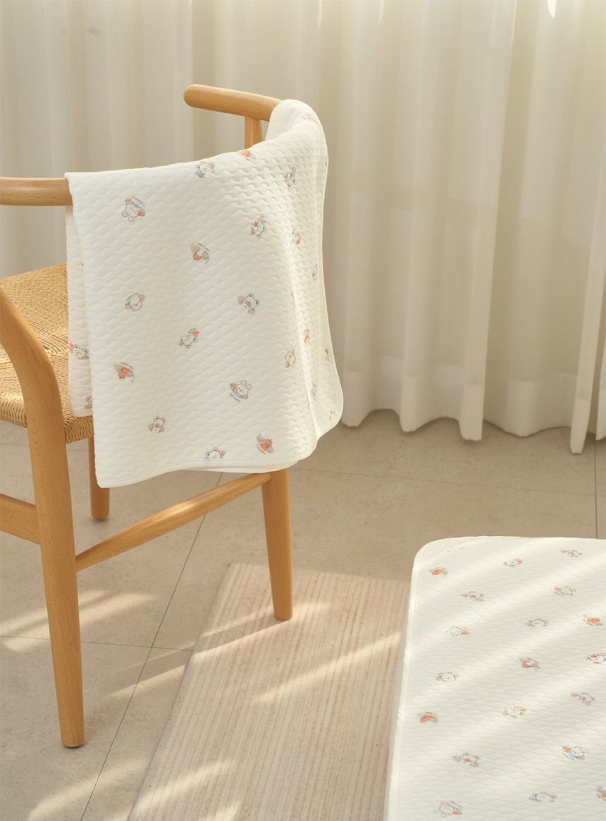 織物表面有做壓紋處理,觸感舒適又柔軟,有著天然純棉獨具的柔順手感~厚薄度適中,四季皆宜,重量很輕所以也方便攜帶出門唷!背面是防水PU材質,完全不會滲透到床單上呢!而且最喜歡的一點是,雖然是防水布可是一點都不會吵~有些會有些微類似塑膠布的聲音,這款完全不會喔~ 包邊車線也處理得非常仔細,從小地方就可以看出質感真的很好!