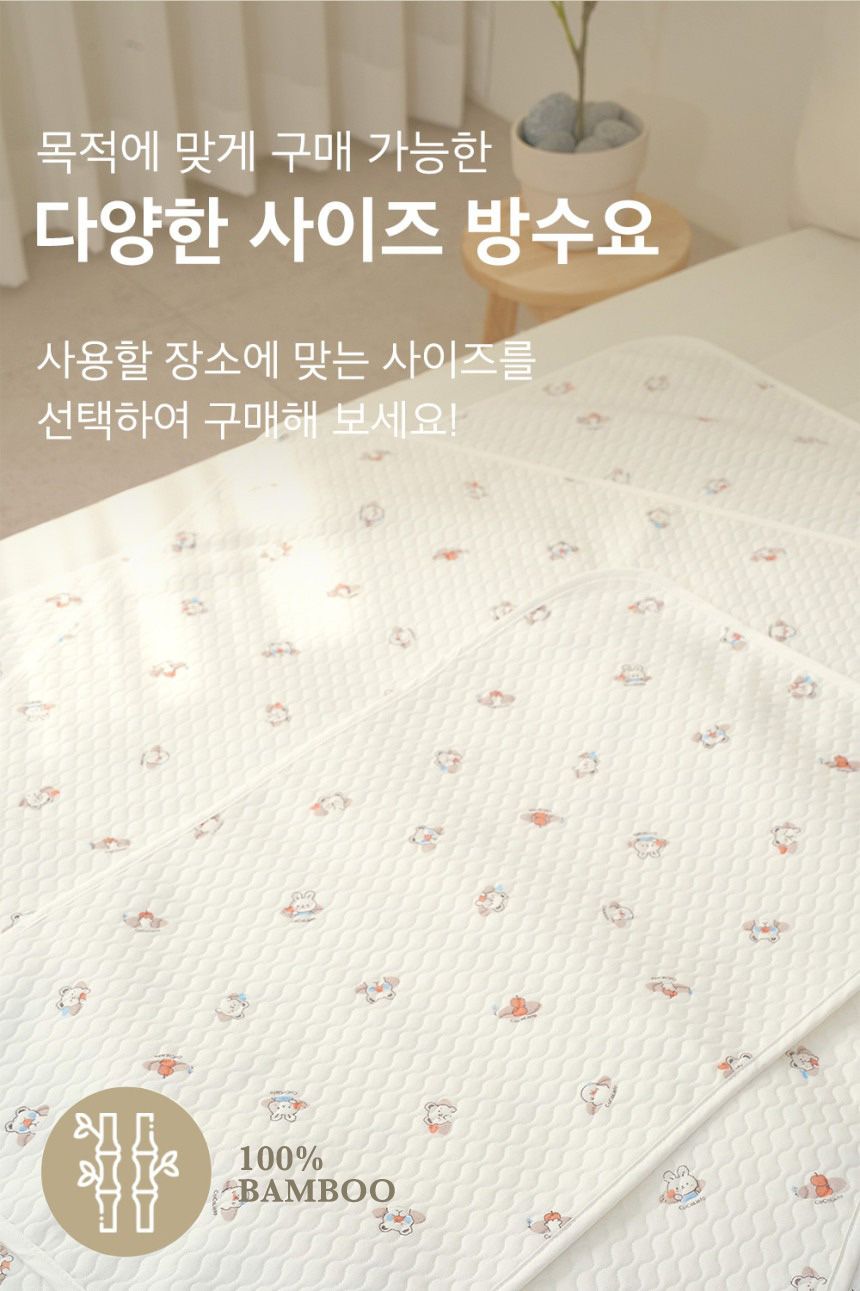 竹纖維材質的最大優點就是透氣、舒適、超吸水!可以快速大量吸水、而且不會滲水,防水墊之下依舊乾乾爽爽!