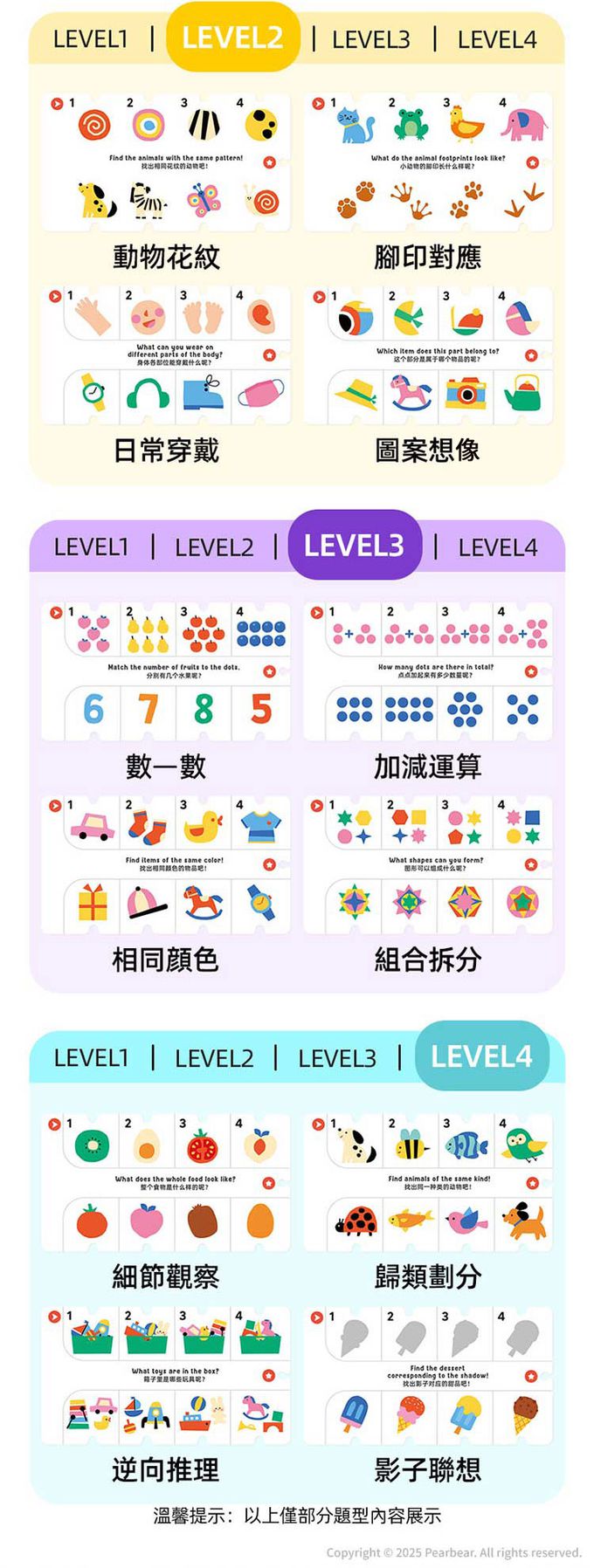 涵蓋形狀、分類、邏輯、數學等多方面訓練