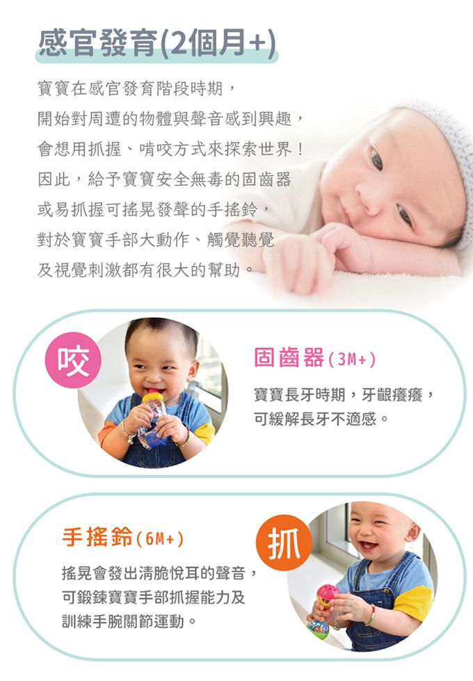 注意事項:【商品規格】 適用年齡:3個月以上(不適用3個月以下) 產品材質:聚碳酸酯(PC)、熱塑性彈性體樹脂(TPE) 耐熱溫度:-18°C~100°C 產地:中國 商品檢驗標識號:M38609 【注意事項】 ● 須由成年人拆開包裝後使用,並請於拆卸後立即將塑膠袋銷毀、丟棄。 ● 可煮沸消毒,每次勿超過3分鐘,避免直接接觸爐火。 ● 可用嬰兒用品專用消毒液,每日勿超過2小時。 ● 避免使用紫外線消毒鍋照射清潔本產品。 ● 詳細的產品清潔方式及使用說明,請參看官方網站 www.toyroyal.com.tw。 ● 玩具如有破損或斷裂,請勿再讓孩童玩耍,以免割傷及避免幼童誤吞小物件,造成嚴重傷害。 ● 請在成年人監護下使用。 ● 本產品標示含有重要信息,請保留備用。