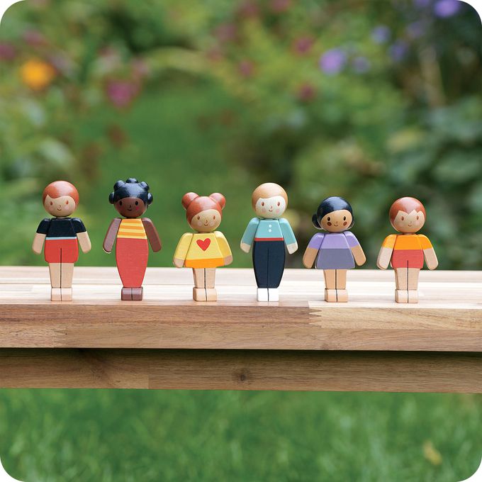 此系列的木偶娃娃採用永續環保橡膠木製成,質感溫潤、手感舒適。每個娃娃擁有可活動的手臂與細緻手工繪製的表情,搭配不同膚色與亮麗服裝,挑選出最貼近自己家庭樣貌的角色,玩出歸屬感與共融價值。