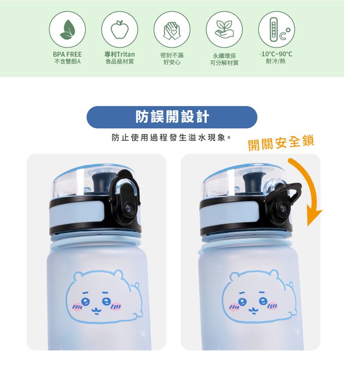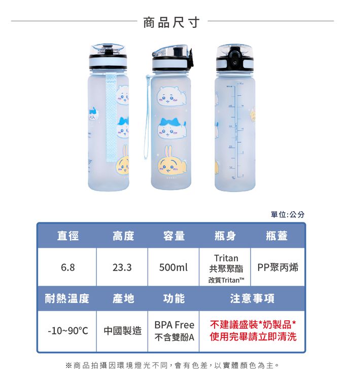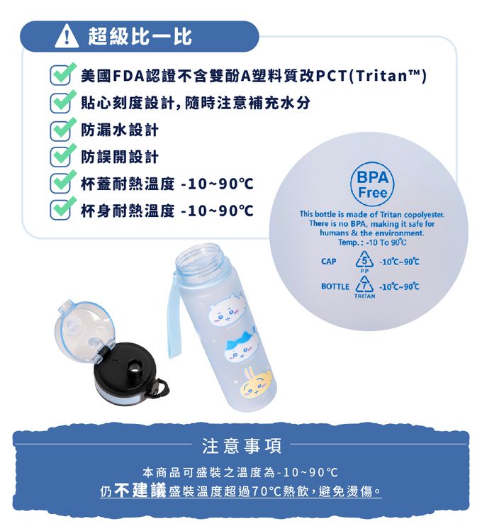 5.材質: 瓶身-Tritan 共聚聚酯 , 瓶蓋-PP 聚丙烯