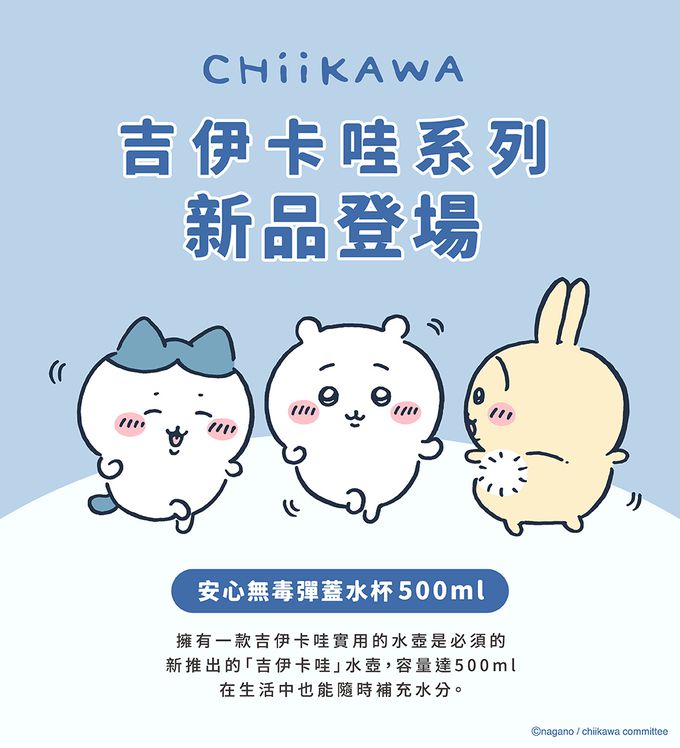 開啟孩子的每一次冒險,IMPACT怡寶推出Chiikawa吉伊卡哇兒童水壺,將是他們的外出最佳夥伴。這款500ML的寶藍色水壺不僅外觀可愛,更具備實用性,讓孩子在校園或戶外活動中隨時保持水分。採用Tritan安全材質,方便小手握持,讓孩子在成長的每一步都充滿活力與健康。