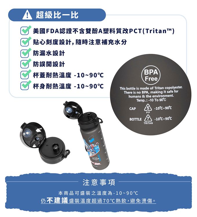 4.瓶身耐熱溫度: -10 ~ 90度C,瓶蓋耐熱溫度: -10 ~ 110度C