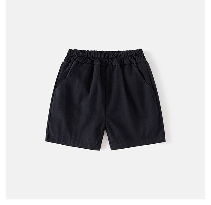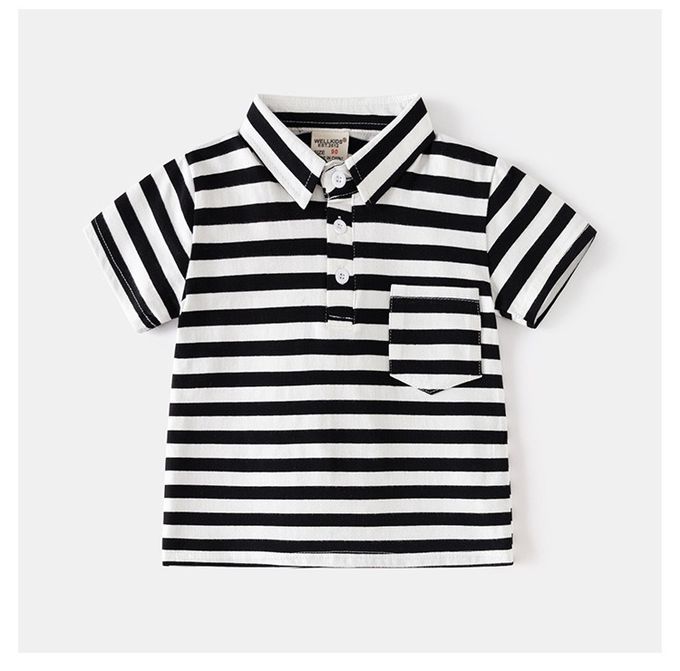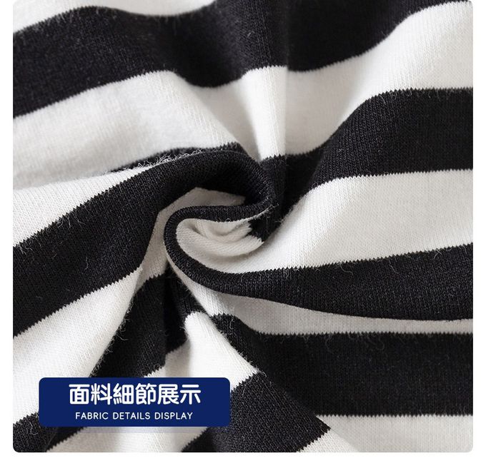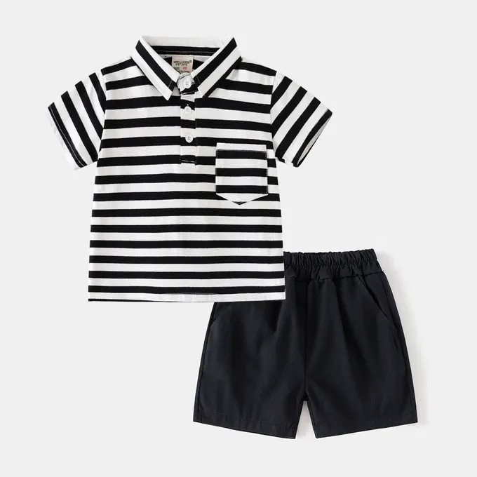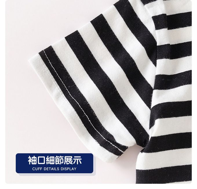 休閒翻領短袖上衣+五分褲套裝-小口袋-黑白條紋