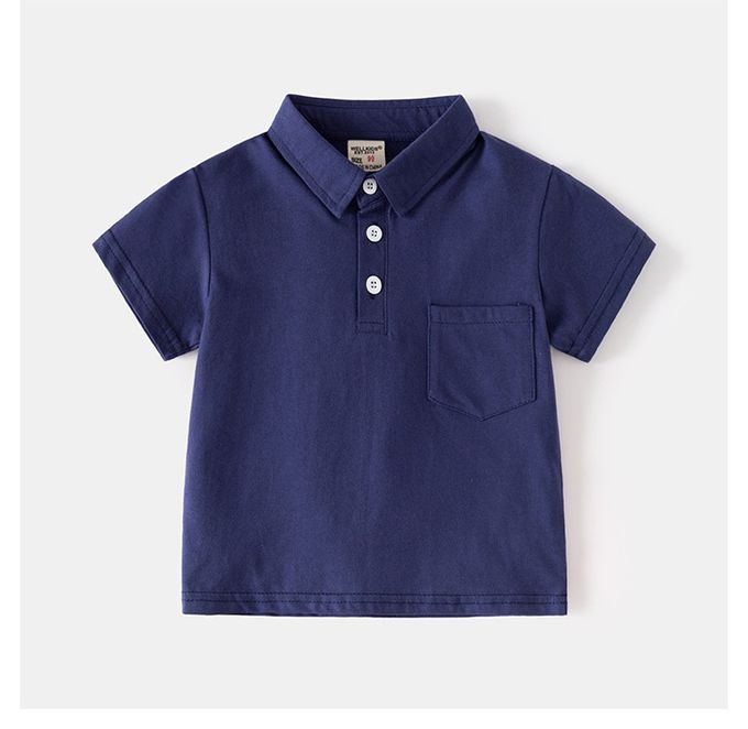 休閒翻領短袖上衣+五分褲套裝-小口袋-藏青