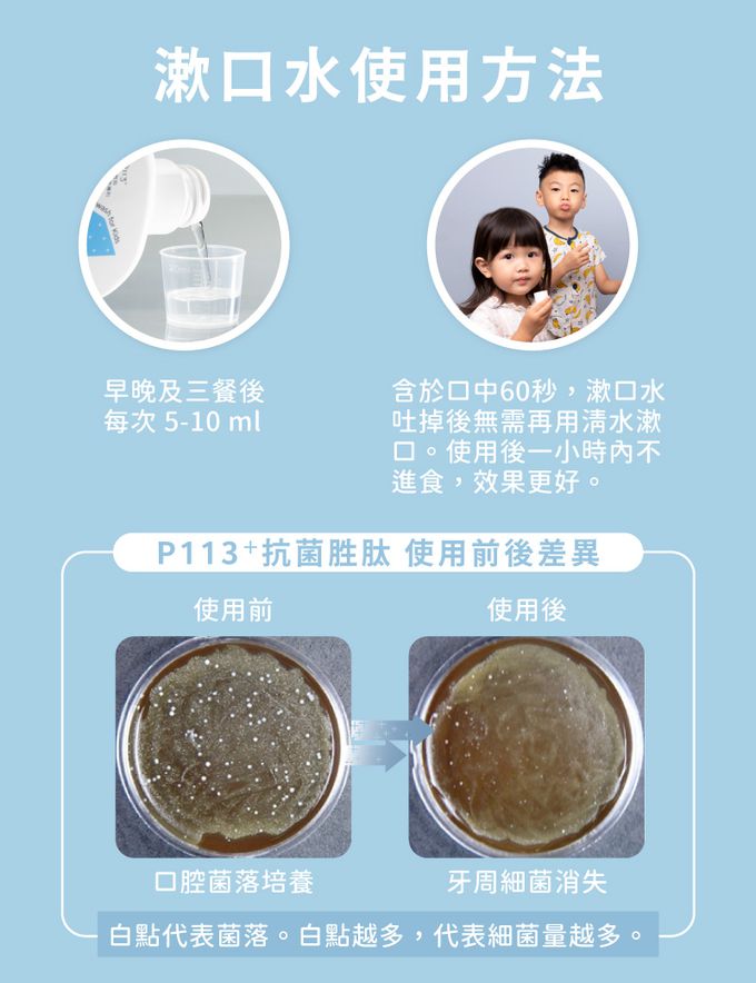 從小到大都是歐克威爾的漱口水,姐姐從1歲用到現在11歲,妹妹從1歲用到現在2歲半