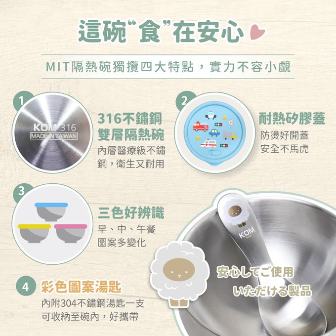碗內皆附一支304不鏽鋼彩色圖案湯匙
