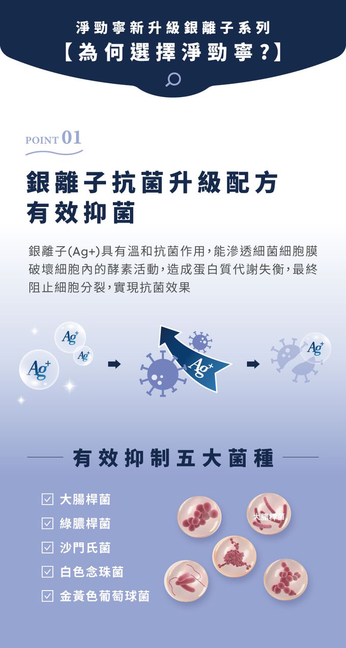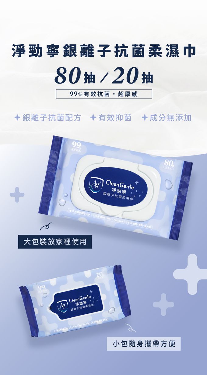 ● 採用銀離子抗菌升級配方。● 有效對抗金黃色葡萄球菌、大腸桿菌、綠膿桿菌、白色念珠菌、沙門氏菌等5大菌種。● 材質加厚設計,不易破損、髒污不易滲透、擦拭不沾手。● 觸感柔軟細緻,適合臉部、口部使用。● 無添加酒精、香料、螢光劑,不含MI、 MCI、 Paraben類致敏防腐劑,安心呵護肌膚。