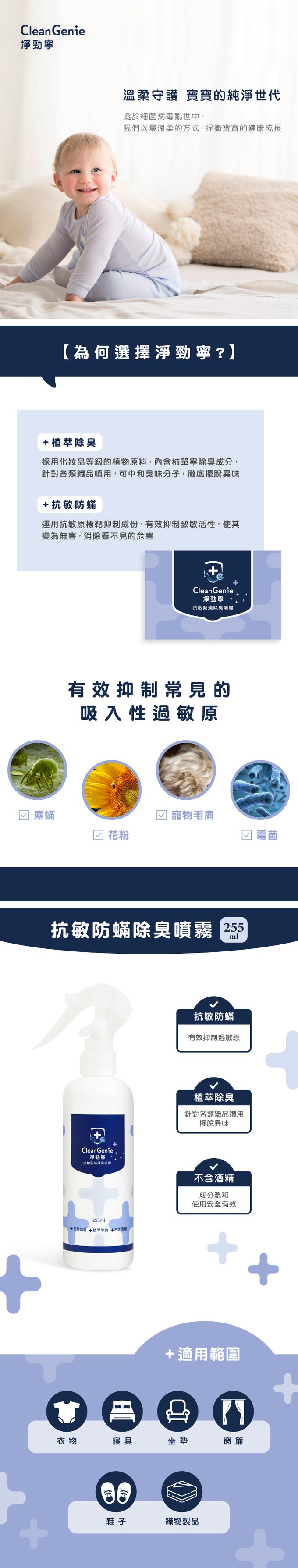 採用化妝品等級的植物原料,內含柿單寧除臭成分,針對各類織品噴用,可中和臭味分子,徹底擺脫異味。