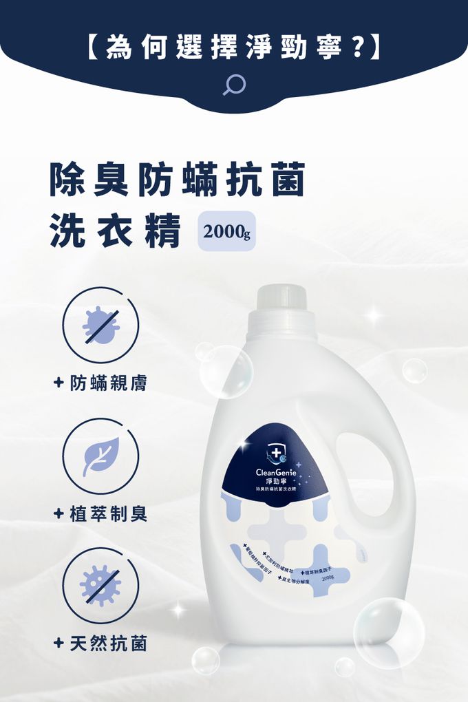• 品名:淨勁寧除臭防螨抗菌洗衣精補充包 2000ml 3入