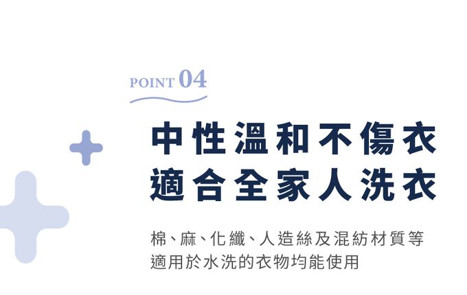 • 洗滌/清潔建議:棉、麻、化纖、人造絲及混紡材質等適用於水洗的衣物均能使用。