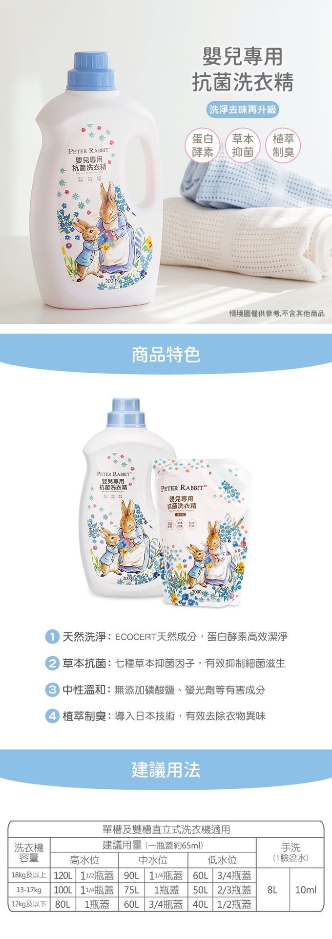 • 品名:比得兔嬰兒抗菌洗衣精-補充包6入