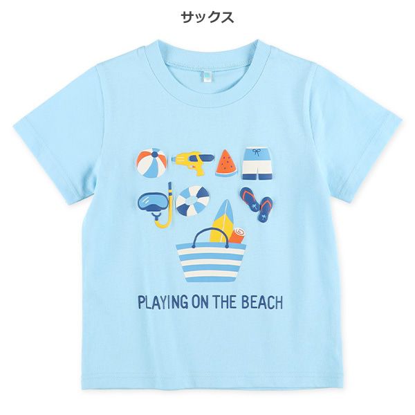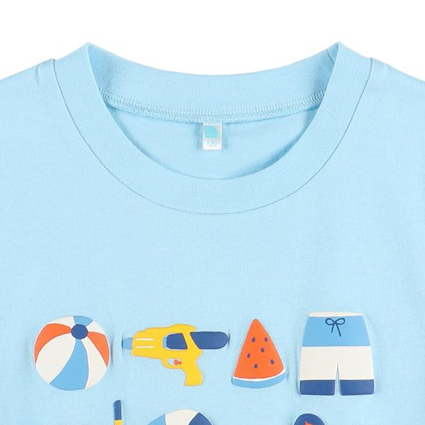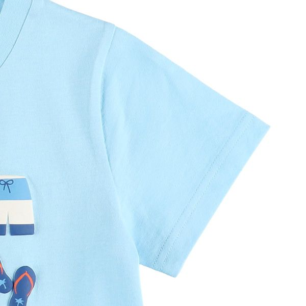 ![日本西松屋 - 華夫格異素材絲帶長袖上衣-白x藍紫]()