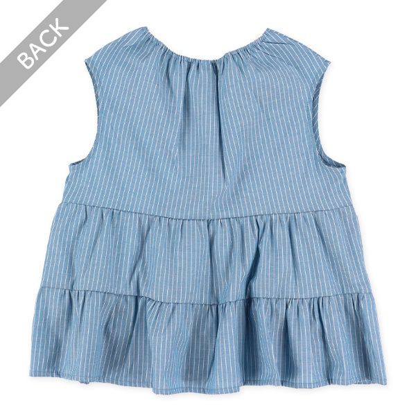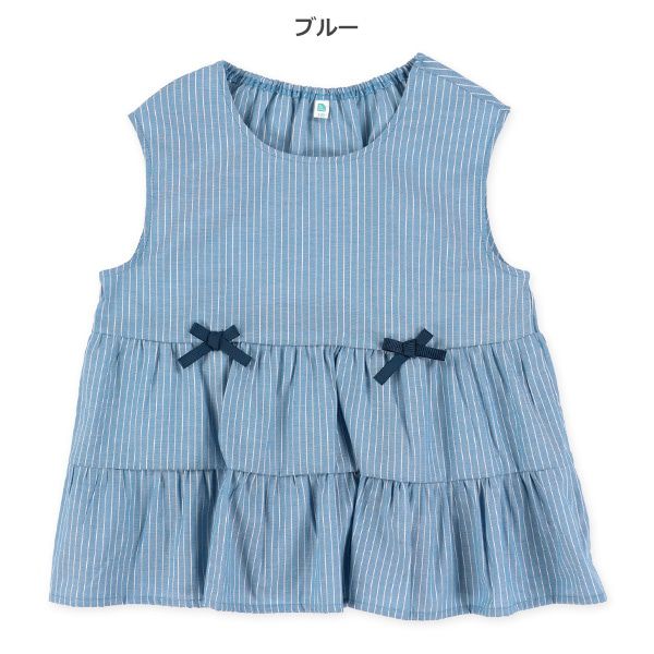 ![日本西松屋 - 華夫格異素材絲帶長袖上衣-白x藍紫]()