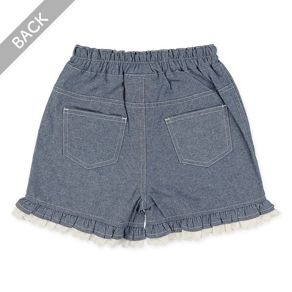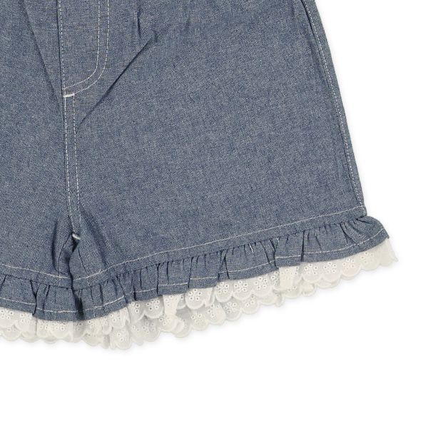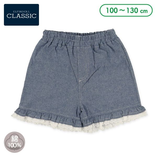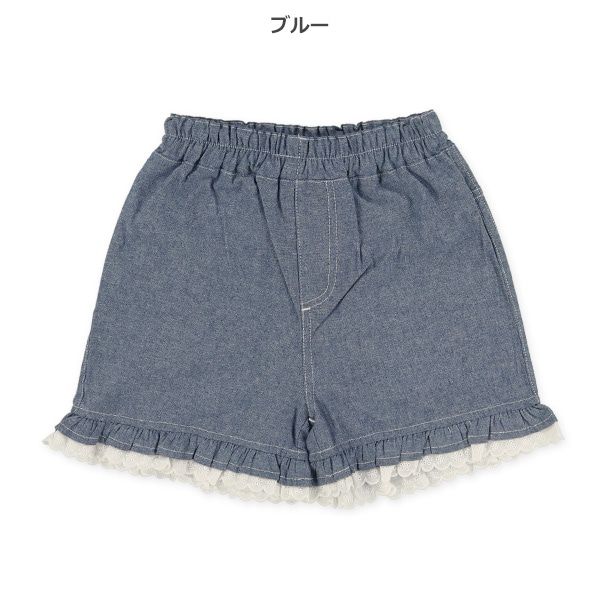 日本西松屋 - 100%棉 蕾絲褲管鬆緊短褲-丹寧藍