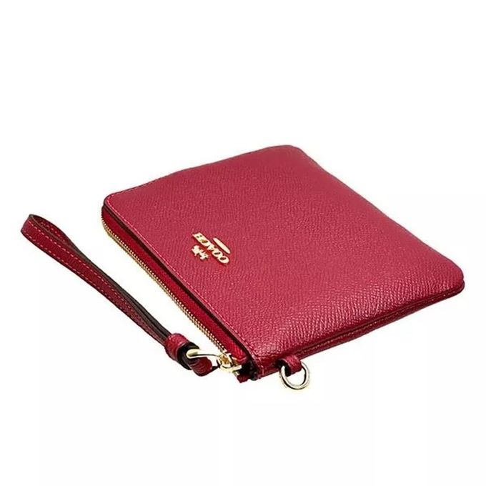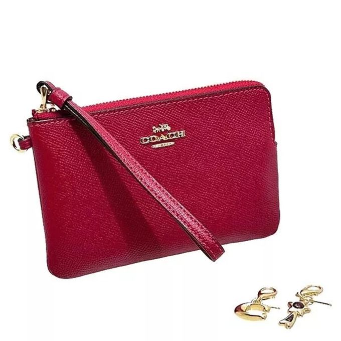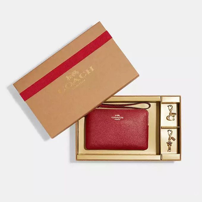素面皮革L型手拿包及吊飾禮盒 (紅色)