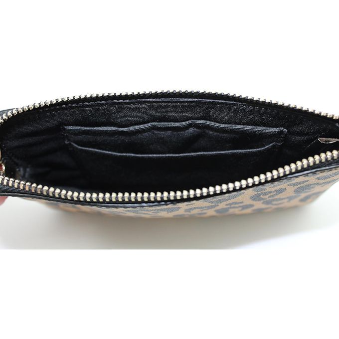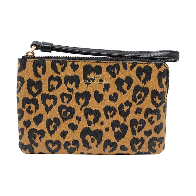 印花皮革L型拉鍊手拿包 (愛心豹紋)