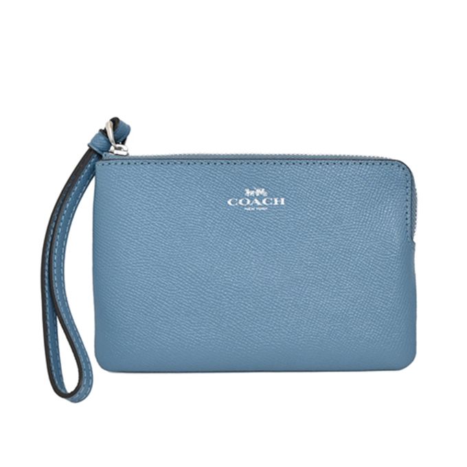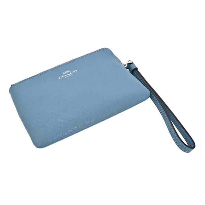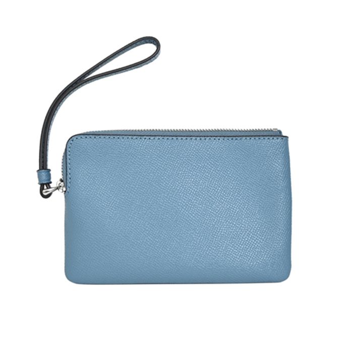 素面皮革L型拉鍊手拿包 (藍灰色)