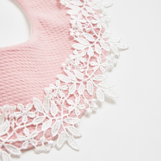 浪漫蕾絲造型圍兜(嬰兒圍兜 寶寶圍兜 口水巾 口水圍兜)-莓粉色