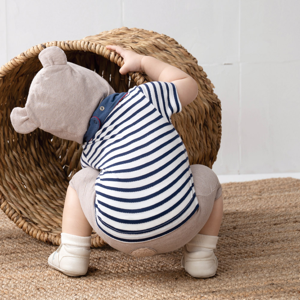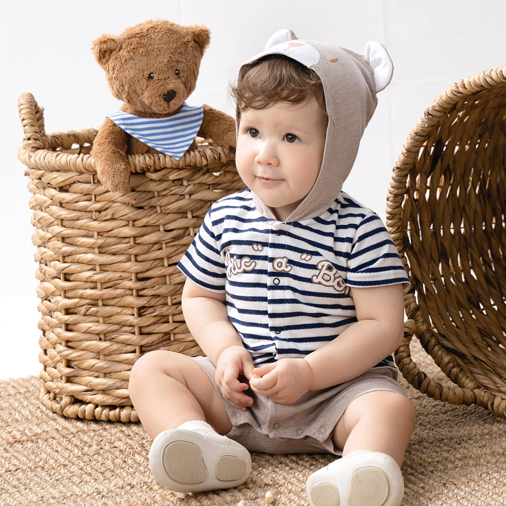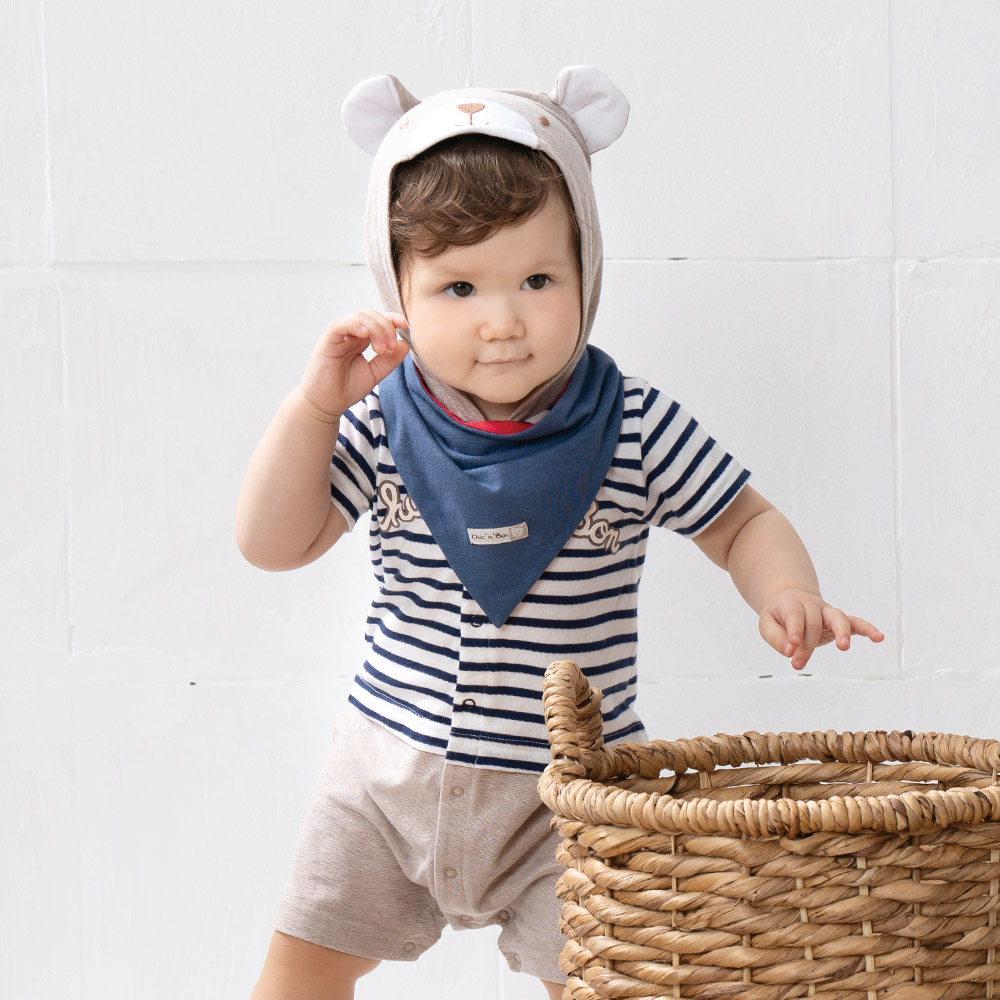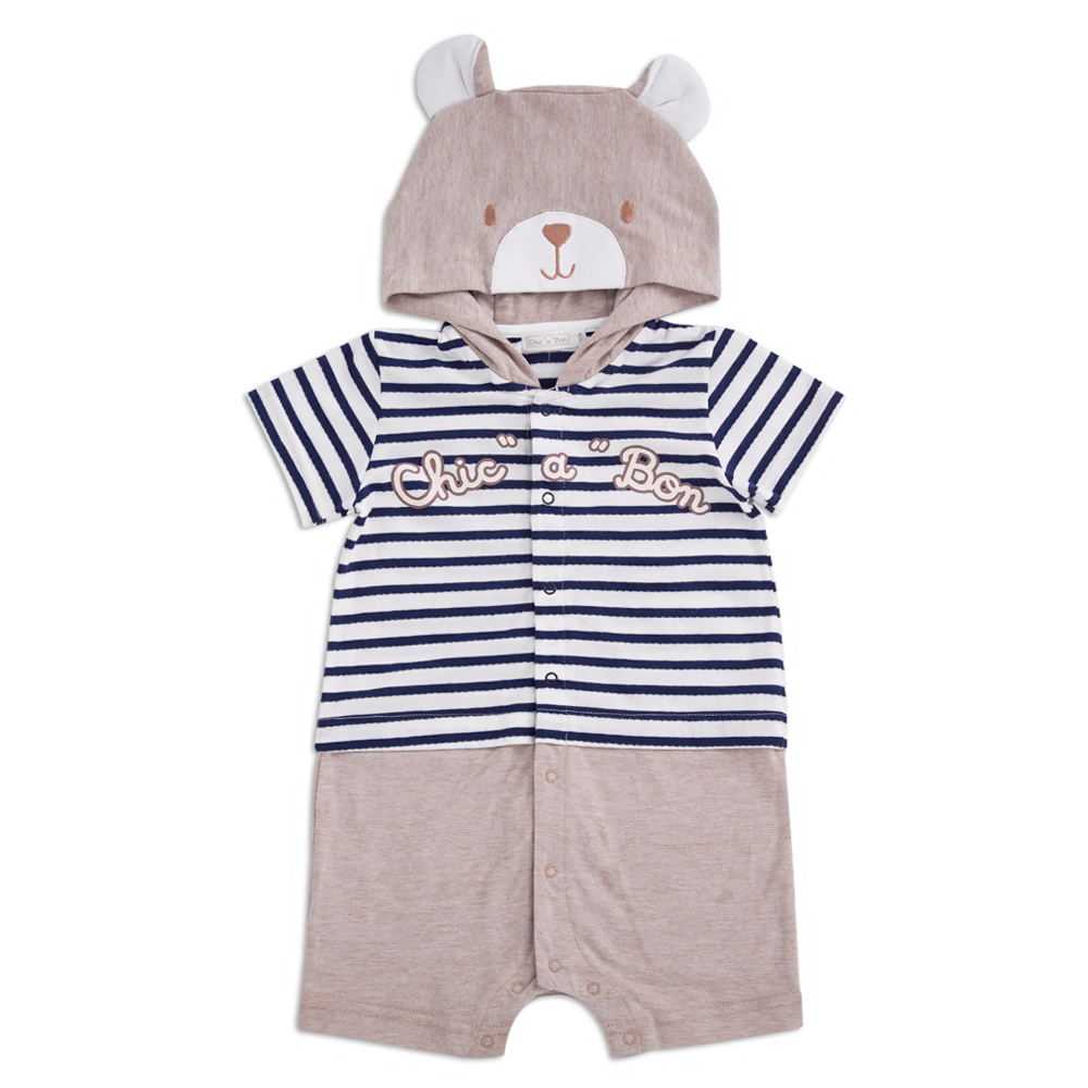 品名:Chic a Bon 嬰幼童裝 熊熊造型短袖兔裝/連身衣-附雙面領巾(6-18個月)